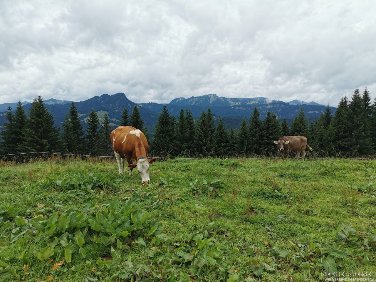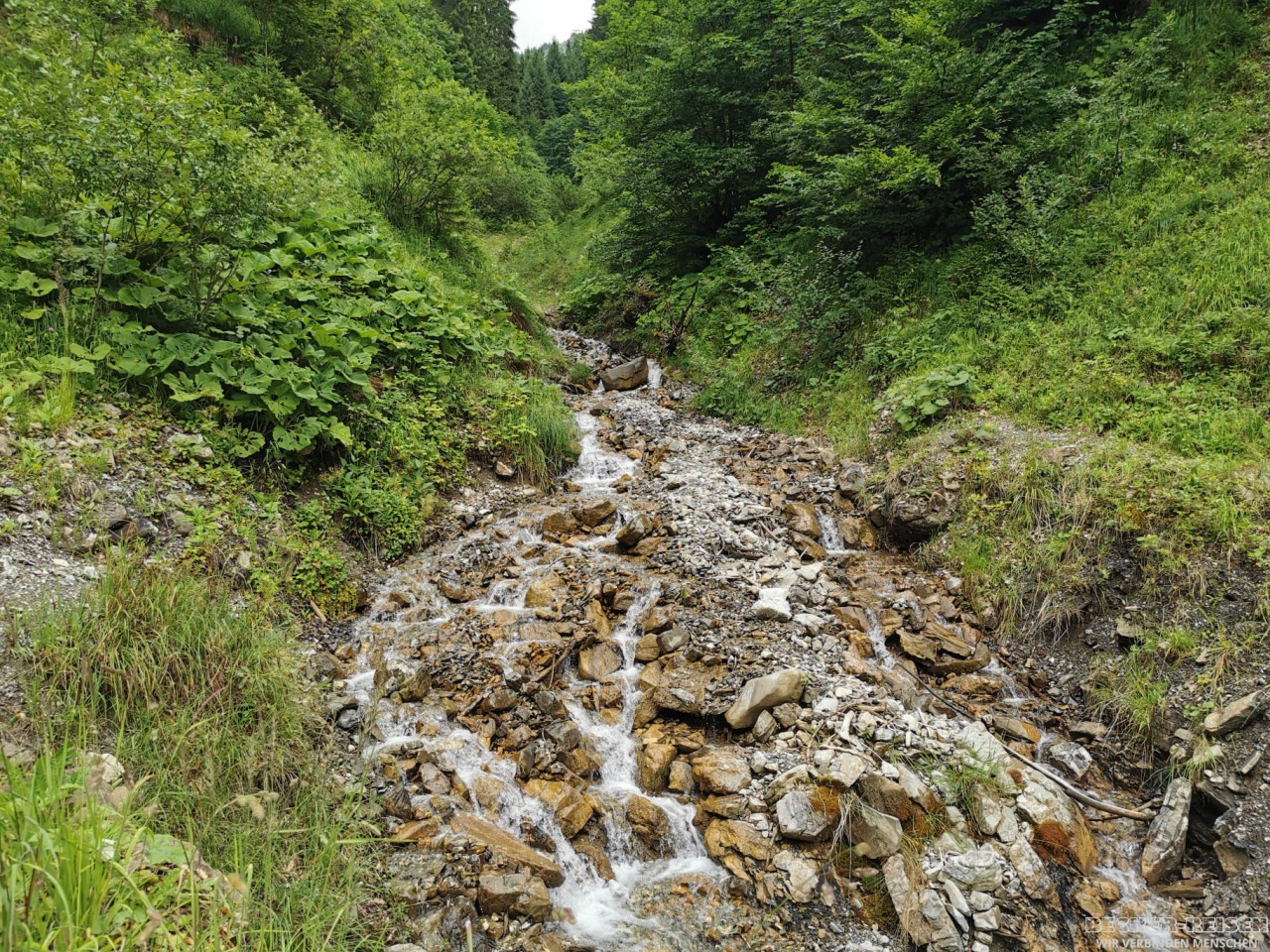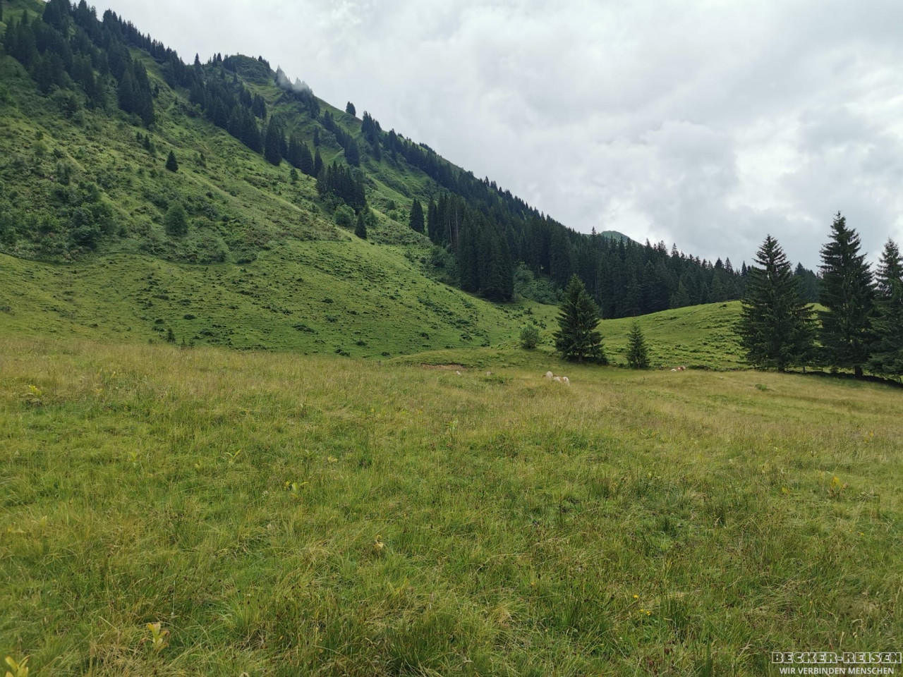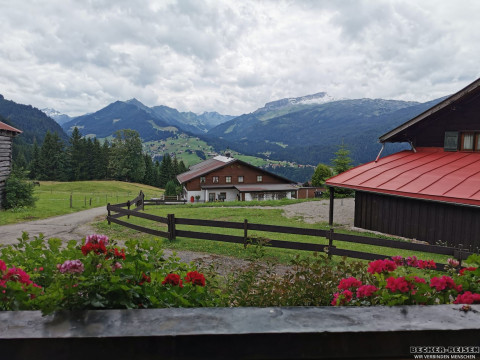 Gut gestärkt wanderten wir talwärts nach Riezlern. Der Weg führte durch blühende Almwiesen, vorbei an plätschernden Bächen – Naturkino pur.