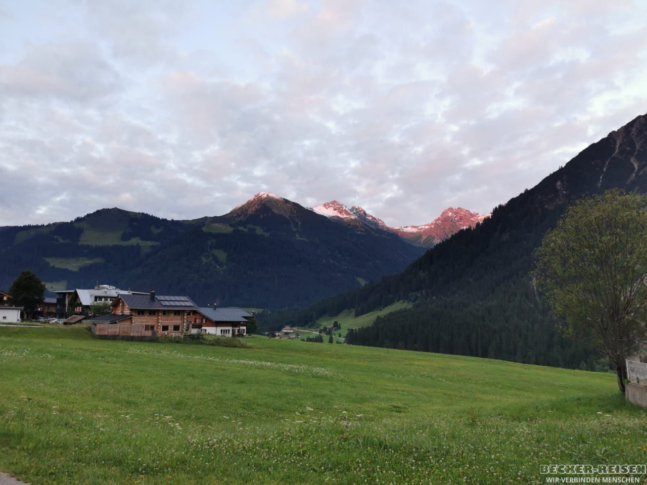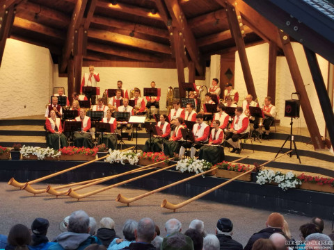 Und als ob das noch nicht genug gewesen wäre, folgte am Abend ein ganz besonderer Moment: Alpenglühen über den Gipfeln, während im Ort das Platzkonzert erklang. Musik, Berge, Gemeinschaft – ein Abend, wie aus dem Bilderbuch.