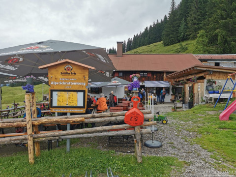 Mit der Söllereckbahn ging's dann gemütlich hinauf zur Schrattenwang Alm. Dort wartete eine zünftige Brotzeit mit Käse, Speck und frischem Brot – regional, einfach gut und mit Blick auf ein beeindruckendes Bergpanorama.