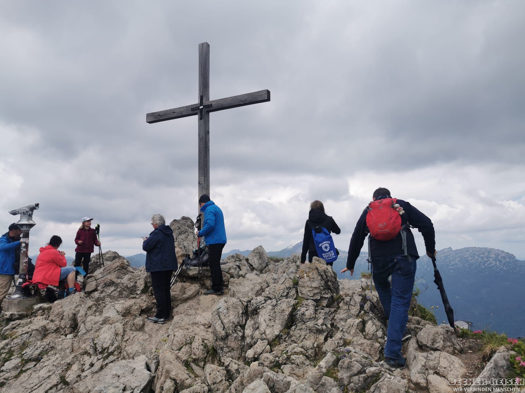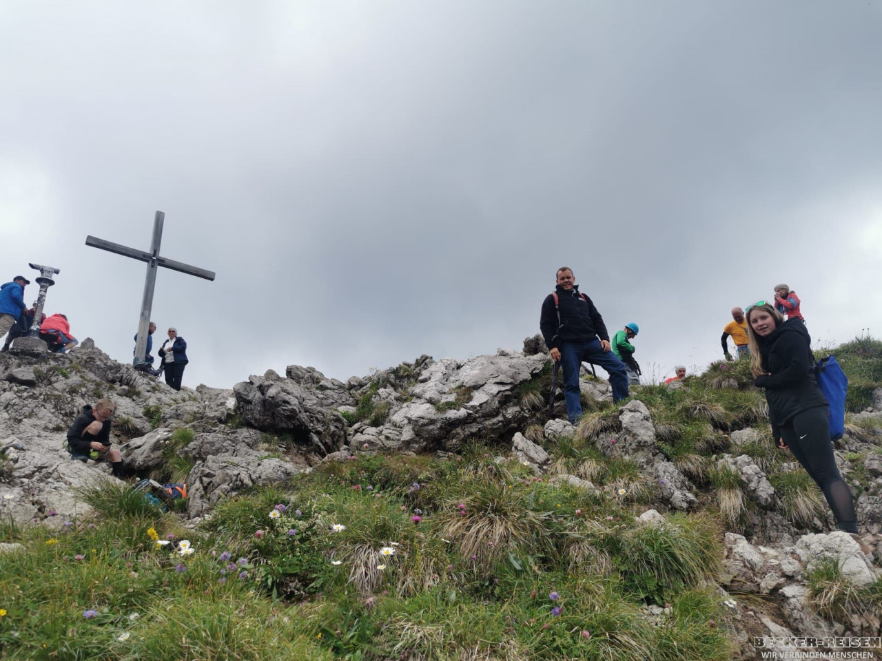 Am Nachmittag ging es mit der Kanzelwandbahn erneut in die Höhe. Oben wanderten wir zum Gipfelkreuz, begleitet von Sonne, guter Laune und einem Ausblick, der uns die Zeit vergessen ließ.
