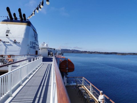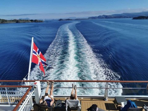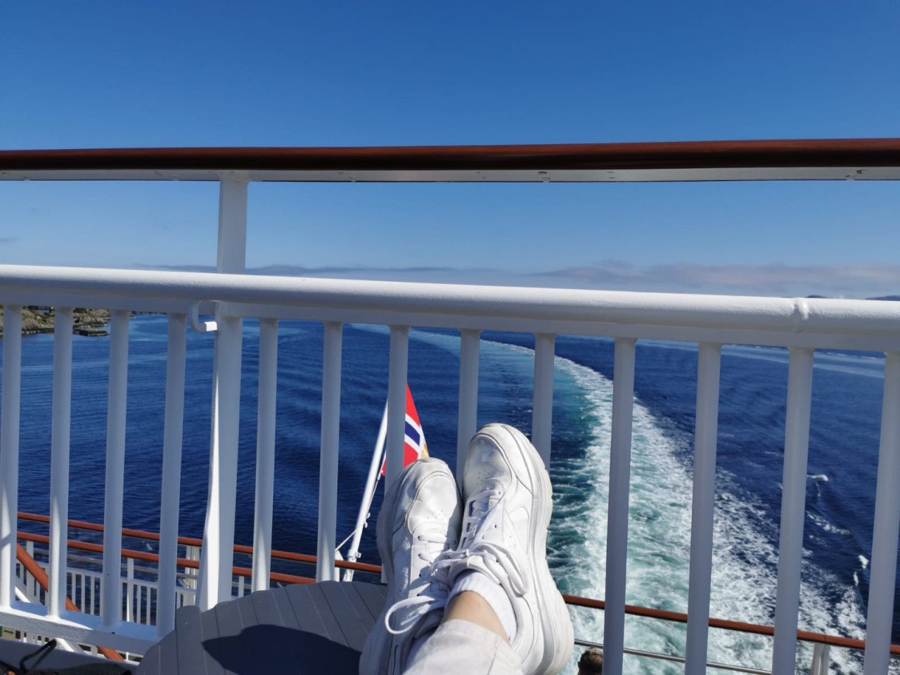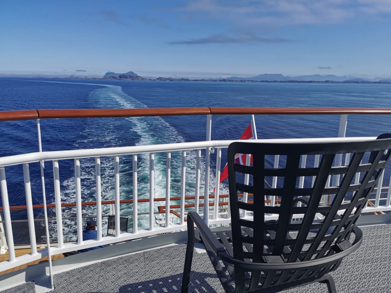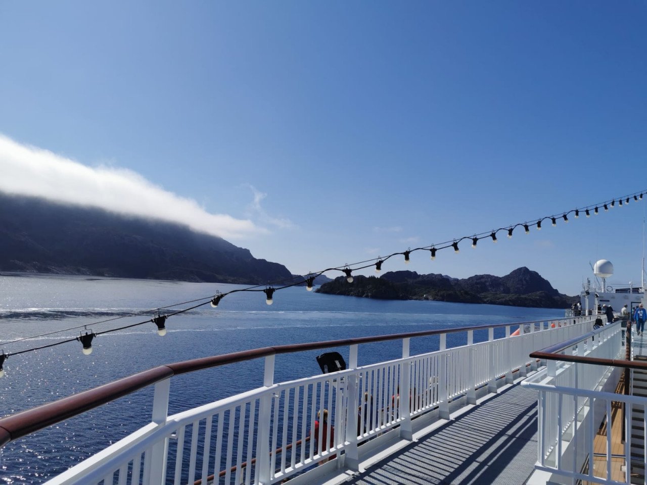 Sonnenschein und Meeresbrise: Perfekte Bedingungen zum RelaxenDas Wetter hätte nicht besser sein können. Der klare, blaue Himmel und die warme Sommersonne luden dazu ein, sich auf dem Deck der Havila Pollux zu entspannen. Viele von uns verbrachten den Vormittag auf den Sonnenliegen, ließen sich die sanfte Meeresbrise um die Nase wehen und genossen die spektakuläre Aussicht. Einige wagten sogar ein erfrischendes Bad im Pool an Bord.