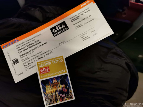 Samstag: Tattoo Show 2025 – Spektakel der SuperlativeNach unserer bequemen Anreise startete das Highlight des Tages: der Besuch der Tattoo Show 2025 in der Bremer ÖVB-Arena. Über 900 Teilnehmer aus zehn Nationen boten ein faszinierendes Programm. Die Nachmittagsshow begeisterte mit einer Mischung aus beeindruckenden Marschformationen, musikalischer Vielfalt und kunstvollen Choreografien. Jede Nation präsentierte ihre kulturellen Eigenheiten, von Dudelsackklängen bis hin zu spektakulären Trommelrhythmen – ein Erlebnis, das Gänsehaut garantierte.