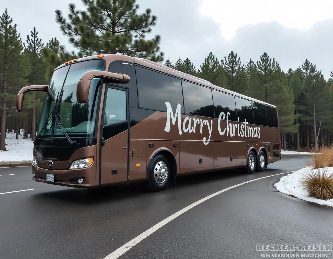 Es war ein frostiger Dezembermorgen, als der Bus von Becker Reisen sanft durch die verschneite Landschaft rollte. Die Welt draußen war in ein zauberhaftes Weiß gehüllt, und über den Fenstern des Busses funkelten kleine Lichterketten, die eine gemütliche Weihnachtsstimmung verbreiteten. Die Passagiere, allesamt Menschen der Generation 50+, waren in Gespräche vertieft, während leise Weihnachtsmusik im Hintergrund spielte.
