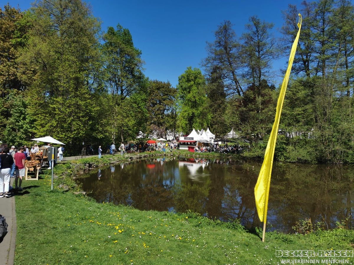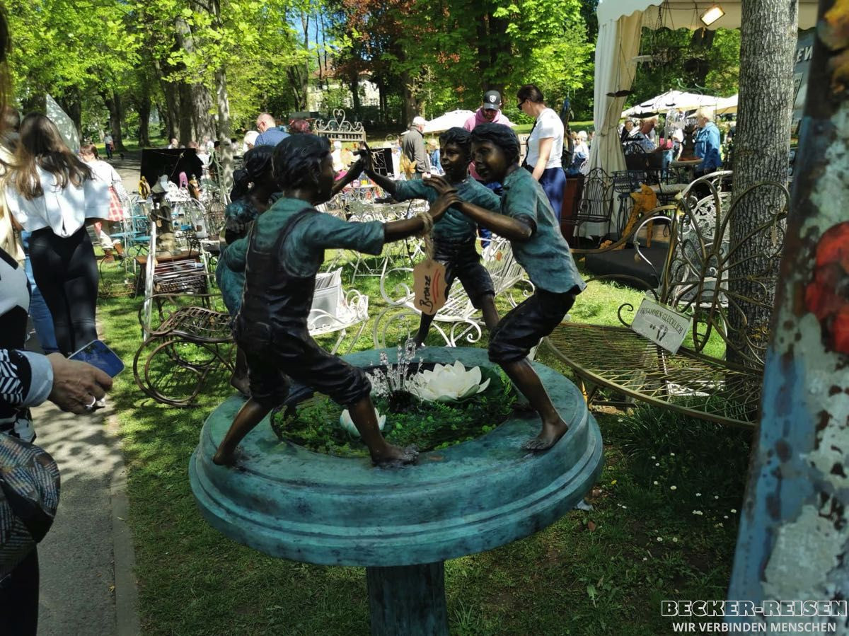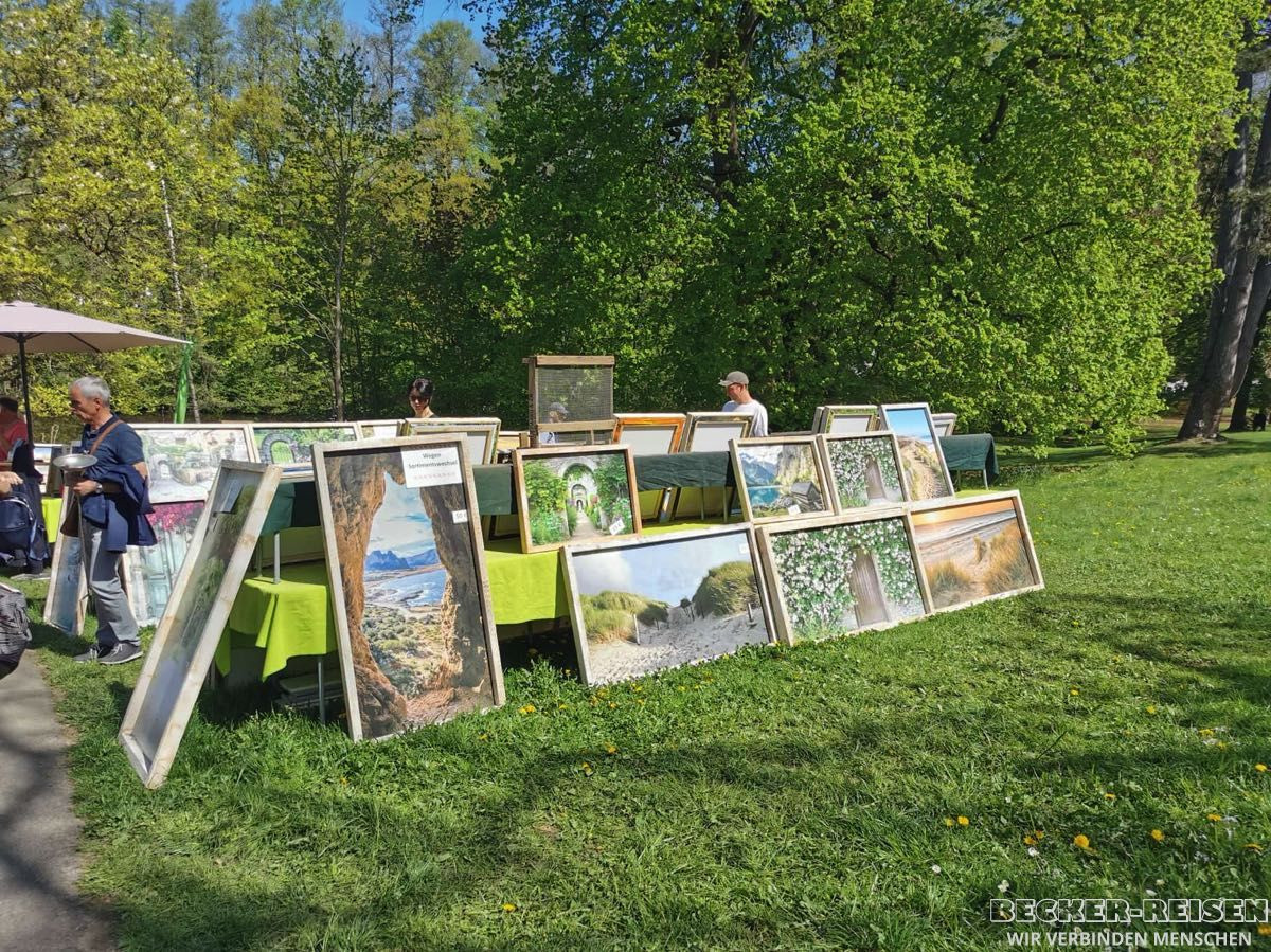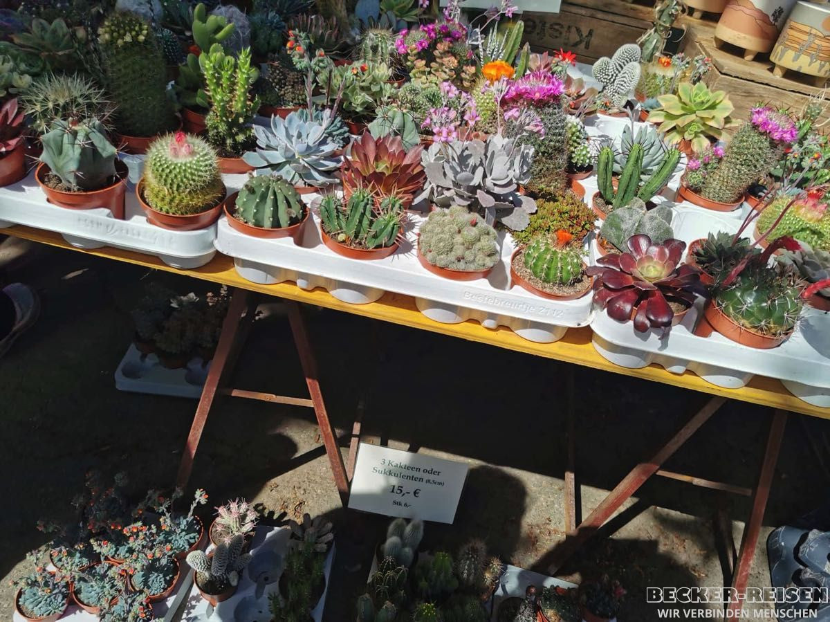 Unsere Reisegäste schlenderten entspannt über das Gelände, tauschten Tipps mit Gärtnern, genossen Kaffee und Kuchen im Schlosscafé oder ruhten sich im Schatten alter Bäume aus. Viele fanden besondere Mitbringsel – ein kunstvoll gefertigter Windfänger, ein außergewöhnlicher Rosenstock oder einfach eine neue Idee für den eigenen Balkon.