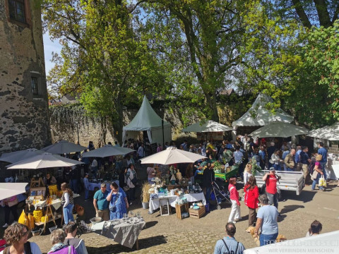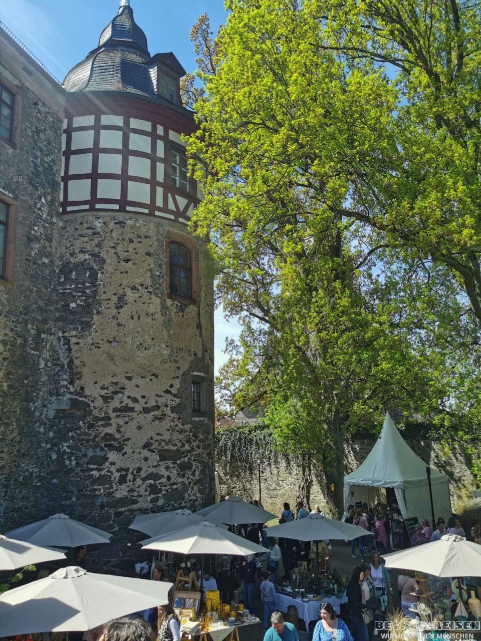 Schon bei der Ankunft erwartete uns eine Szenerie wie aus dem Bilderbuch: Sonnenschein, sanfter Frühlingsduft in der Luft und das historische Schloss Laubach, eingebettet in ein Meer aus Farben. Die Aussteller hatten sich große Mühe gegeben – ob seltene Pflanzen, handgefertigte Dekorationen oder regionale Spezialitäten: Überall gab es etwas zu entdecken, zu probieren oder mit nach Hause zu nehmen.