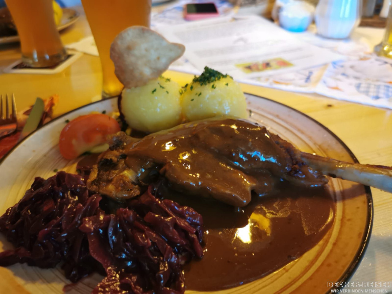 Traditionelle Gänsebraten-Köstlichkeiten im ErzgebirgeDie kulinarische Reise beginnt mit einem festlichen Mittagessen im Fichtenhäusel. Hier erwartet die Gäste ein traditionell hergestellter Gänsebraten, zubereitet nach alten, überlieferten Rezepten aus der Region. Saftiges Fleisch, knusprige Haut und aromatische Beilagen wie Klöße und Rotkohl versprechen höchsten Genuss und machen das Essen zu einem unvergesslichen Erlebnis. Hier wird Wert auf regionale Qualität und echte Handwerkskunst gelegt – ein Geschmackserlebnis, das den Zauber des Erzgebirges perfekt widerspiegelt.