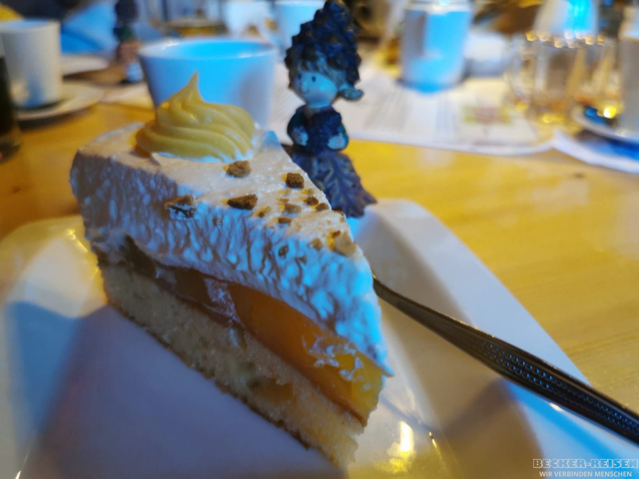 Kaffeegedeck und FesttagstorteNach dem herzhaften Gänseessen gibt es noch eine süße Krönung: das Kaffeegedeck mit Festtagstorte. Was könnte schöner sein, als sich mit einem Stück dieser festlichen Torte und einer heißen Tasse Kaffee in der gemütlichen Stube zurückzulehnen? Der Duft von Kaffee und Kuchen, das knisternde Kaminfeuer und die freundliche Atmosphäre des Fichtenhäusels runden den Tag perfekt ab.