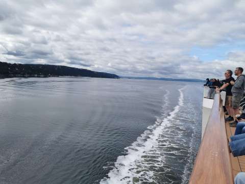 Nächtliche Fahrt nach OsloNach dem Abendessen erkunden wir noch ein wenig das Schiff. Es gibt verschiedene Bars, Lounges und sogar ein kleines Theater. Einige von uns nutzen die Gelegenheit, den Tag mit einem Drink an der Bar ausklingen zu lassen, während andere die frische Meeresluft an Deck genießen.