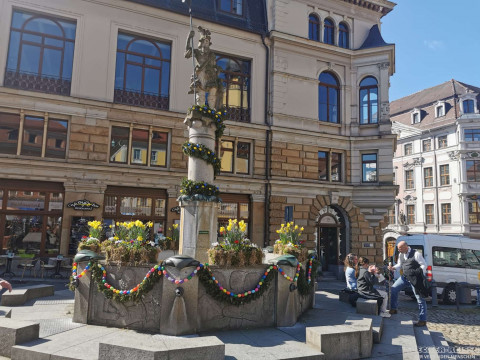 Zum Abschluss unserer Reise ließen wir uns auf dem Hauptmarkt noch ein Eis schmecken – in der Sonne, mit Blick auf die bunten Häuserfassaden, begleitet vom Klang des Ostertrubels. Es war einer dieser Momente, in denen alles passte: Wetter, Gesellschaft, Stimmung.