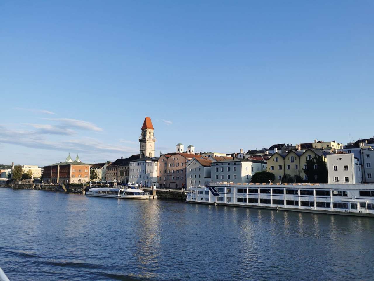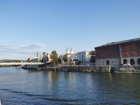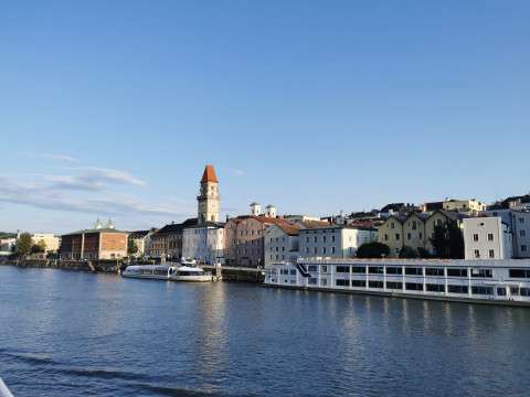 Passau entdecken: Am 3. August stand die Erkundung von Passau auf dem Programm. Die Stadt, auch bekannt als das „Bayerische Venedig", beeindruckte uns mit ihrer malerischen Altstadt und den historischen Gebäuden. Wir schlenderten durch die engen Gassen, besichtigten den Dom St. Stephan und genossen die Aussicht auf die Zusammenflüsse von Donau, Inn und Ilz.