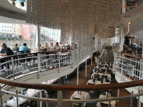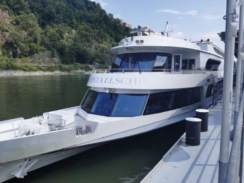 Swarovski Kristall Schiff: Am Nachmittag setzten wir unsere Reise auf dem glitzernden Swarovski Kristall Schiff fort. Die Fahrt auf der Donau war ein echtes Highlight – das Schiff war mit funkelnden Kristallen verziert und bot eine atemberaubende Aussicht auf die Landschaft.