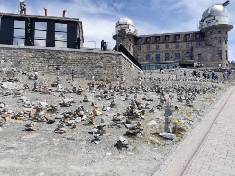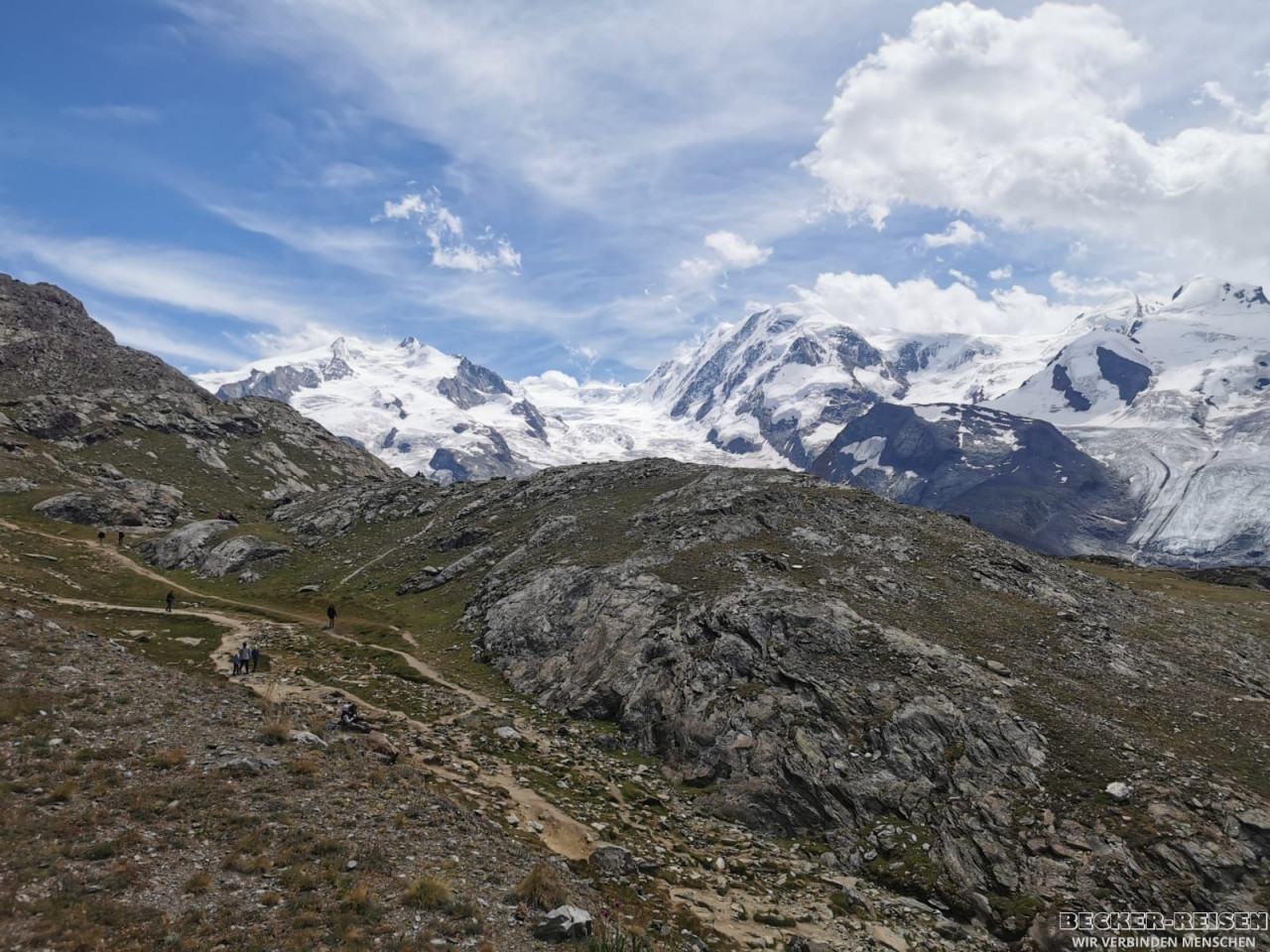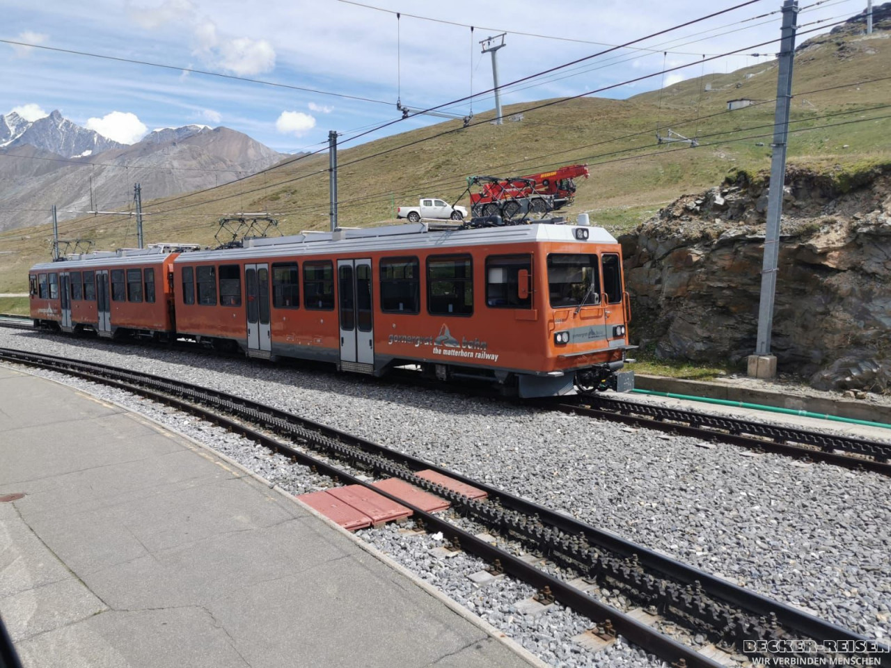 Für die Abenteuerlustigen ging es noch höher hinaus: mit der Gornergrat-Bahn bis auf 3.100 Meter. Die Zahnradbahn schlängelte sich vorbei an Seen, Felsen und Schneefeldern – und oben angekommen, bot sich ein Panorama, das einem den Atem raubte: 29 Viertausender, das Monte-Rosa-Massiv und das Matterhorn zum Greifen nah.