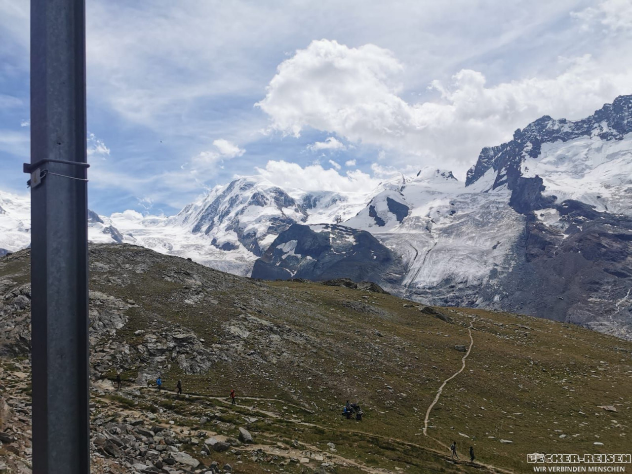 Oben ein kühler Wind, unten das bunte Leben in Zermatt – der Tag war ein Hochgenuss auf allen Ebenen. Und als wir am späten Nachmittag den Rückweg antraten, war klar: Dieser Tag war ein Höhepunkt. Im wahrsten Sinne des Wortes.