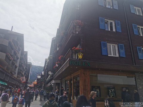Unsere Fahrt führte uns zunächst mit dem Bus nach Täsch, dem autofreien Tor zu Zermatt. Von dort ging es per Shuttlezug weiter ins berühmte Bergdorf. Und dann war er da – dieser Moment, wenn sich das Matterhorn zwischen den Holzhäusern zeigt: scharfkantig, ehrfurchtgebietend, fast surreal schön. Die Gäste verteilten sich in alle Richtungen – einige flanierten durch die Gassen, andere suchten ein schattiges Plätzchen mit Aussicht.