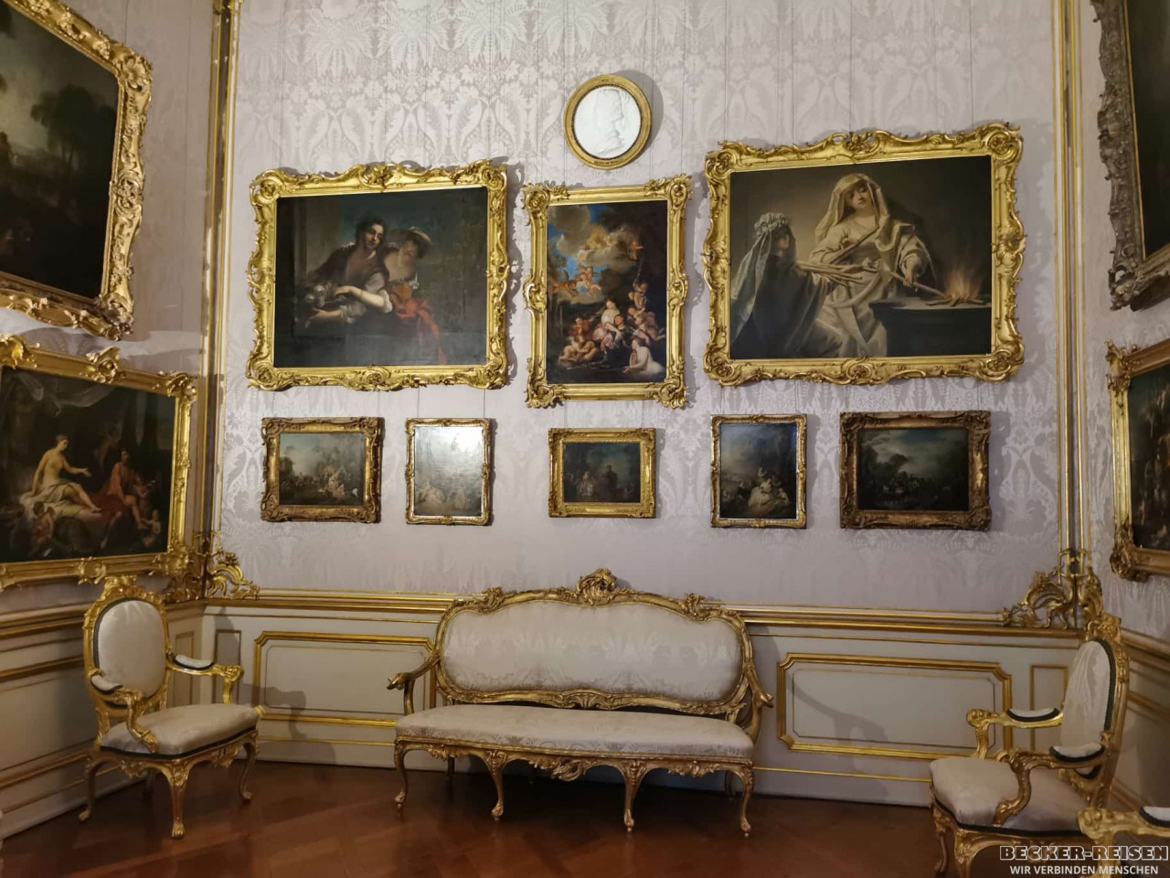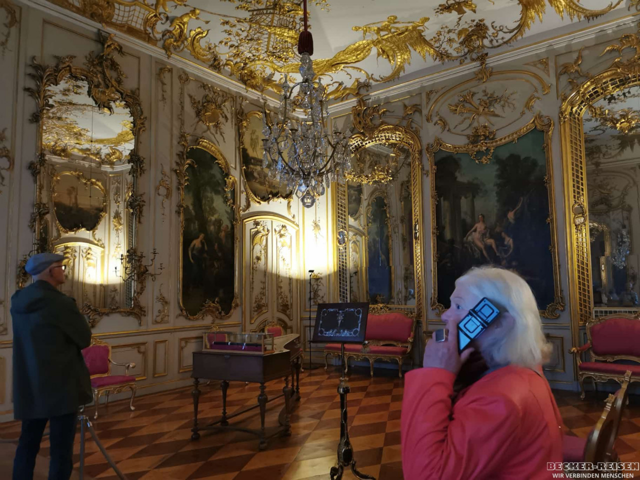 Anschließend folgte der Besuch des berühmten Schloss Sanssouci. Die Rokoko-Residenz Friedrichs des Großen beeindruckte mit eleganter Leichtigkeit und prächtigen Räumen. Doch damit nicht genug: Auch das Neue Palais öffnete für uns seine Tore – bei einer exklusiven Führung erkundeten wir das größte Schlossensemble im Park Sanssouci.