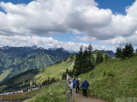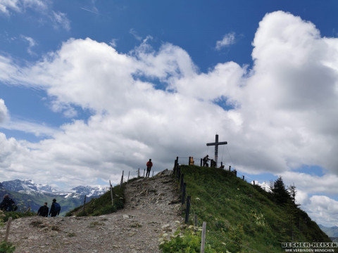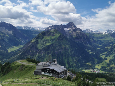 Heute ging's wieder hoch hinaus: Mit der Walmedingerhornbahn schwebten wir bequem dem Himmel entgegen. Oben angekommen eröffnete sich ein Panorama, das selbst Vielgereiste staunen ließ – majestätische Gipfel ringsum, klare Luft, Weitblick bis zum Horizont.