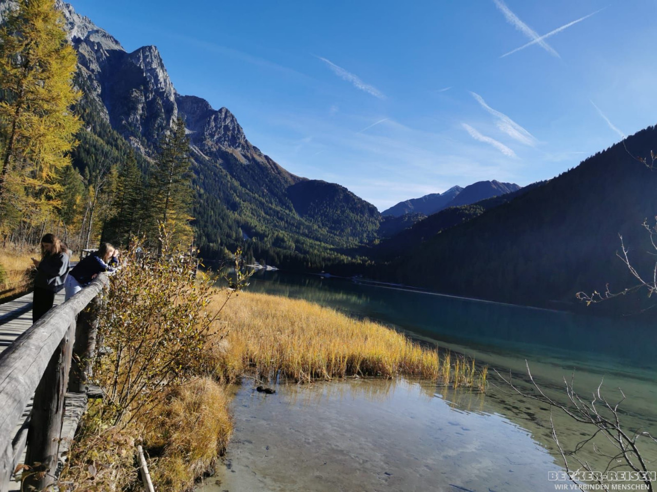 Ein weiterer Höhepunkt war der Ausflug nach Antholz. Auf dem Gelände des bekannten Biathlon-Stadions, wo sich im Winter die Weltelite trifft, bekamen wir spannende Einblicke in die Geschichte und Faszination des Sports. Anschließend lud der Antholzer See zu einem gemütlichen Spaziergang ein – türkisblau, umrahmt von Tannen und Berggipfeln, einfach malerisch.