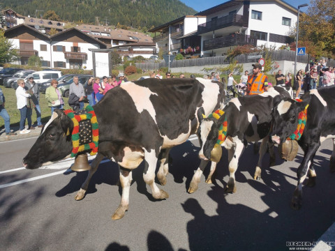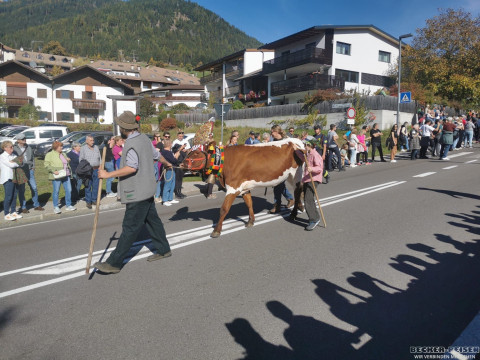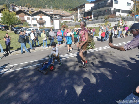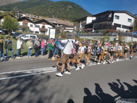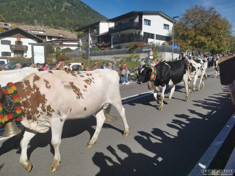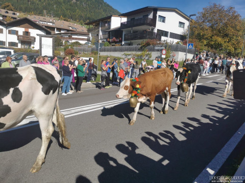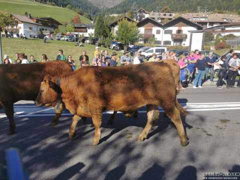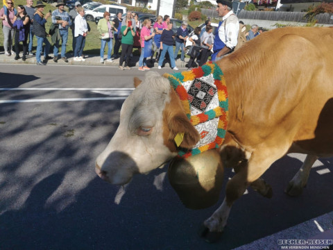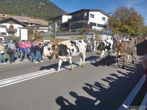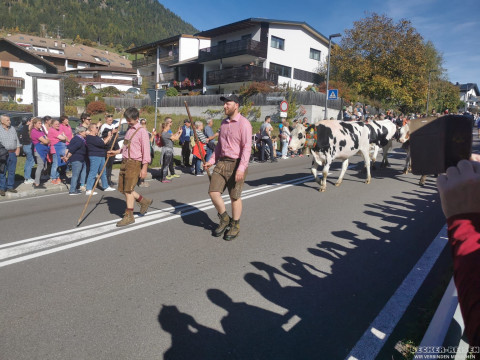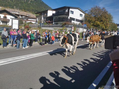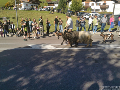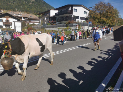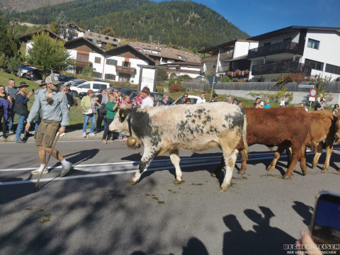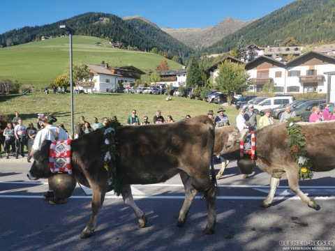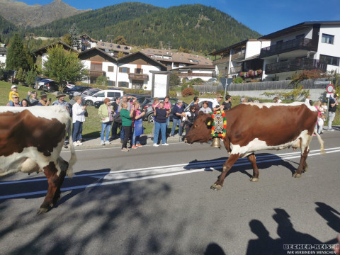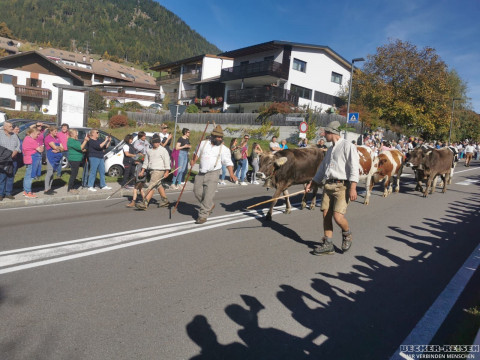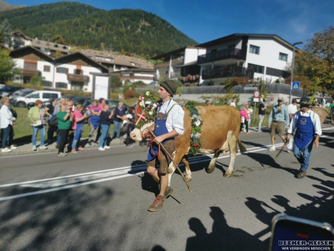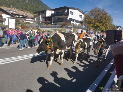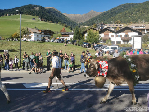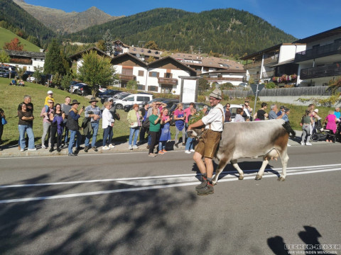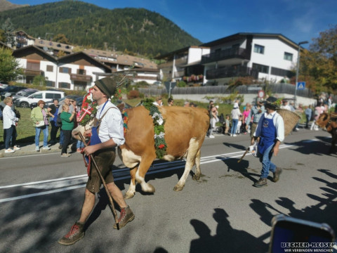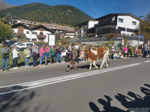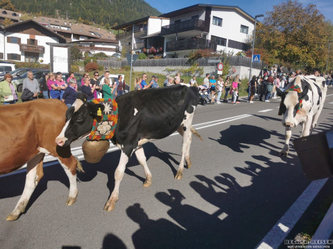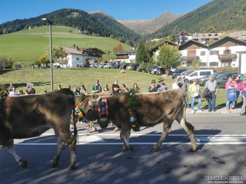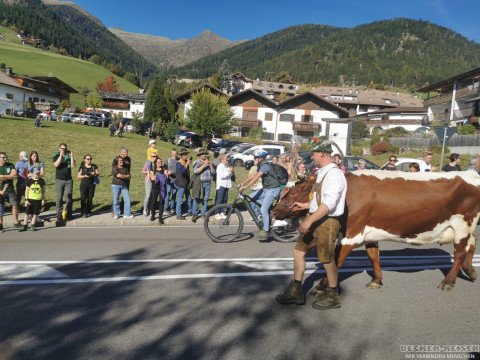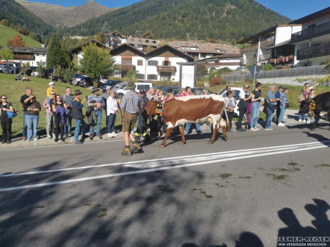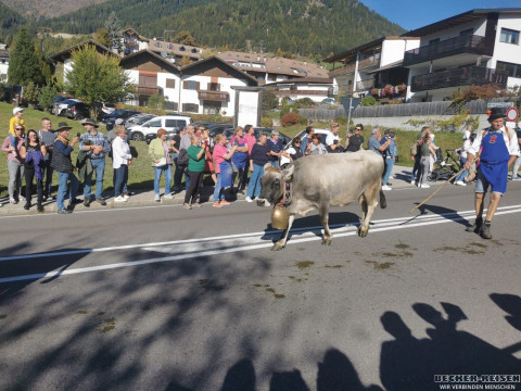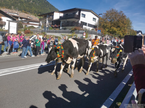 Zum Abschluss unserer Reise erlebten wir den Almabtrieb in Terenten – ein echtes Fest der Dankbarkeit. Wenn die Tiere von den Almen ins Tal zurückkehren, geschmückt mit Blumen, Bändern und Glocken, wird das ganze Dorf zur Bühne. Volksmusik, Tanz und Südtiroler Schmankerln begleiteten den Tag – ein Stück lebendiger Kultur, das man spüren und riechen konnte.