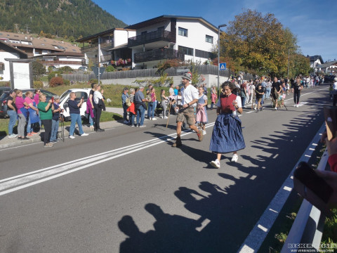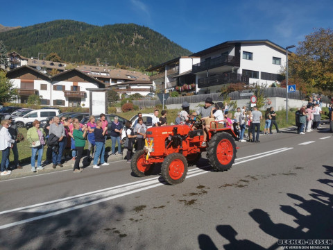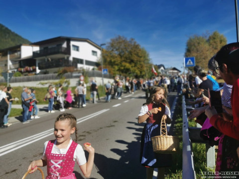 Schon die Fahrt durch die farbenfrohen Täler ließ erahnen, was uns erwartet: leuchtende Apfelplantagen, festlich geschmückte Höfe und die majestätische Bergkulisse der Dolomiten. Beim Apfelfest in Natz drehte sich dann alles um die süßen Früchte, die diese Region so berühmt gemacht haben. Von duftendem Apfelstrudel über frisch gepressten Saft bis hin zum Apfelbrot – es wurde probiert, gelacht und gefeiert. Blasmusik, Trachtengruppen und ein traditioneller Festumzug sorgten für eine fröhliche Stimmung, die sofort ansteckte.
