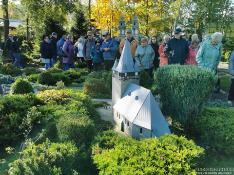 Der Rundgang durch den Park war sowohl informativ als auch faszinierend. Es war erstaunlich, wie viel Liebe zum Detail in jedem einzelnen Modell steckt. Besonders beeindruckend war die Nachbildung des Schlosses Książ und der berühmten Friedenskirche von Schweidnitz. Für viele war es ein Highlight, diese Sehenswürdigkeiten im Miniaturformat aus der Nähe zu betrachten.