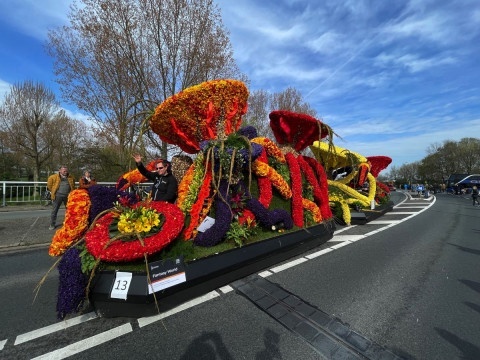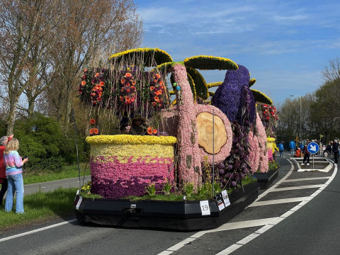 Ein weiteres Highlight unserer Reise war der Blumenkorso, eine Parade von Noordwijk nach Haarlem. Begleitet von fröhlicher Musik und jubelnden Menschenmengen, zogen kunstvoll geschmückte Blumenwagen an uns vorbei. Jeder Wagen war ein Meisterwerk aus Blumen und Kreativität. Es war beeindruckend zu sehen, wie viel Liebe zum Detail in diese Kunstwerke gesteckt wurde. Die Musik der Musikkapellen schuf eine fröhliche und ausgelassene Atmosphäre, die uns alle mitriss.