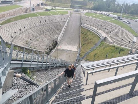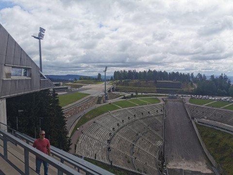 HolmenkollenUnser erster Stopp ist der Holmenkollen, Norwegens berühmteste Skisprungschanze. Hier oben haben wir einen atemberaubenden Blick über die Stadt und den Oslofjord. Die Aussicht ist spektakulär und gibt uns einen großartigen ersten Eindruck von der beeindruckenden Landschaft Norwegens. Der Holmenkollen ist nicht nur ein Sportdenkmal, sondern auch ein Symbol für Norwegens tiefe Verbindung zum Wintersport.