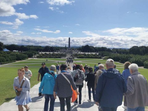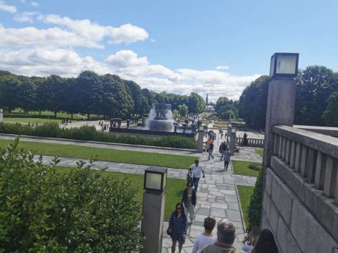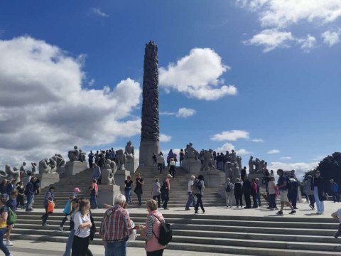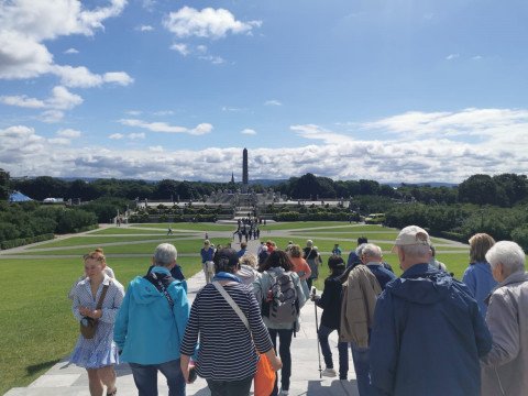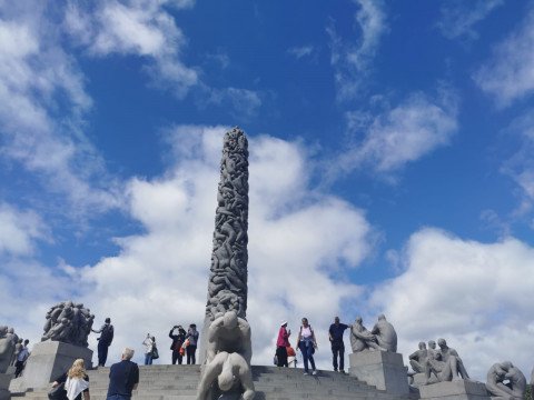 Vigeland ParkWeiter geht es zum Vigeland Park, der größte Skulpturenpark der Welt, der von einem einzigen Künstler geschaffen wurde. Gustav Vigeland hat hier über 200 Skulpturen erschaffen, die verschiedene menschliche Emotionen und Szenen darstellen. Die Atmosphäre im Park ist ruhig und inspirierend, und wir nehmen uns Zeit, die Kunstwerke zu bestaunen und die Schönheit der Natur zu genießen.