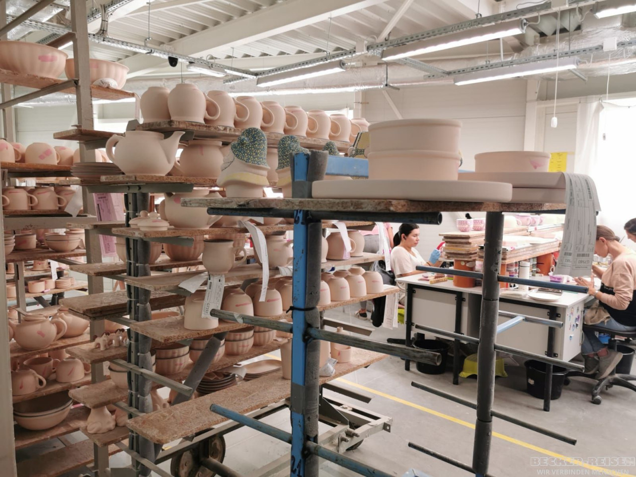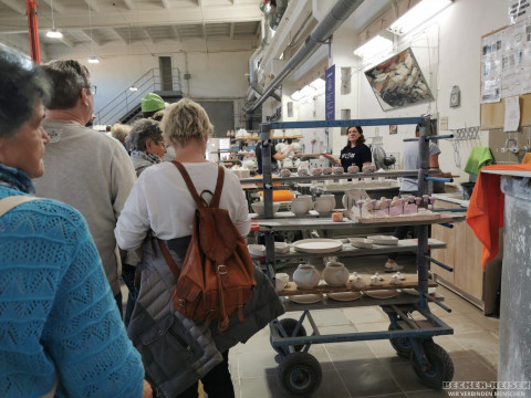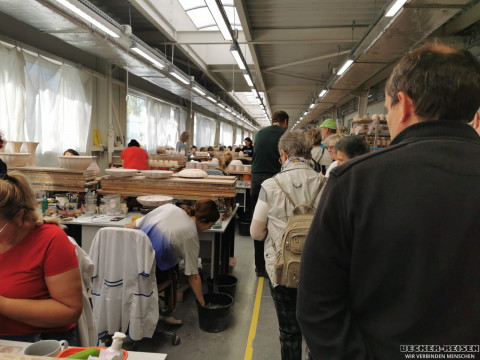 Natürlich durfte ein Besuch im Werksverkauf nicht fehlen, wo viele von uns die Gelegenheit nutzten, handgefertigte Stücke als Andenken oder Geschenke für Zuhause zu erwerben. Ob Tassen, Schüsseln oder dekorative Teller – das Angebot war vielfältig und die Qualität der Keramik beeindruckend.